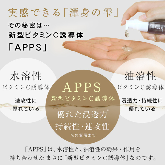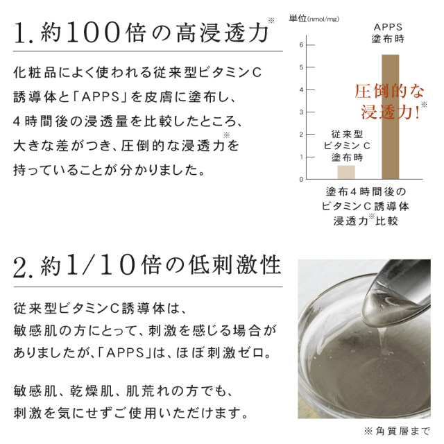 また 新型ビタミンC誘導体APPS の浸透力※は、今までのビタミンCの約100倍とも言われています。