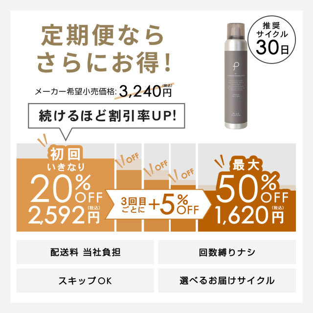 A. 1日1回のご使用で約1.5~2ヶ月ほどお使いいただけます。ただし、1回あたりの噴射時間・回数・使用箇所によって異なってまいります。