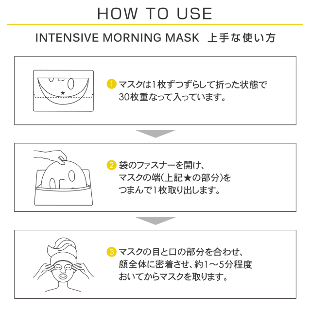 厚生地シートにたっぷり染み込んだ超微粒子ローションが日中に必要な潤いも栄養もスピーディーに補給し、肌を目覚めさせる朝専用の急速スキンケアマスクです。