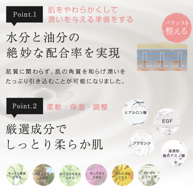 惜しみなく使える量だから、ミルク→ローション→ミルクの流れでうるおいバランスを整える贅沢スキンケアセット